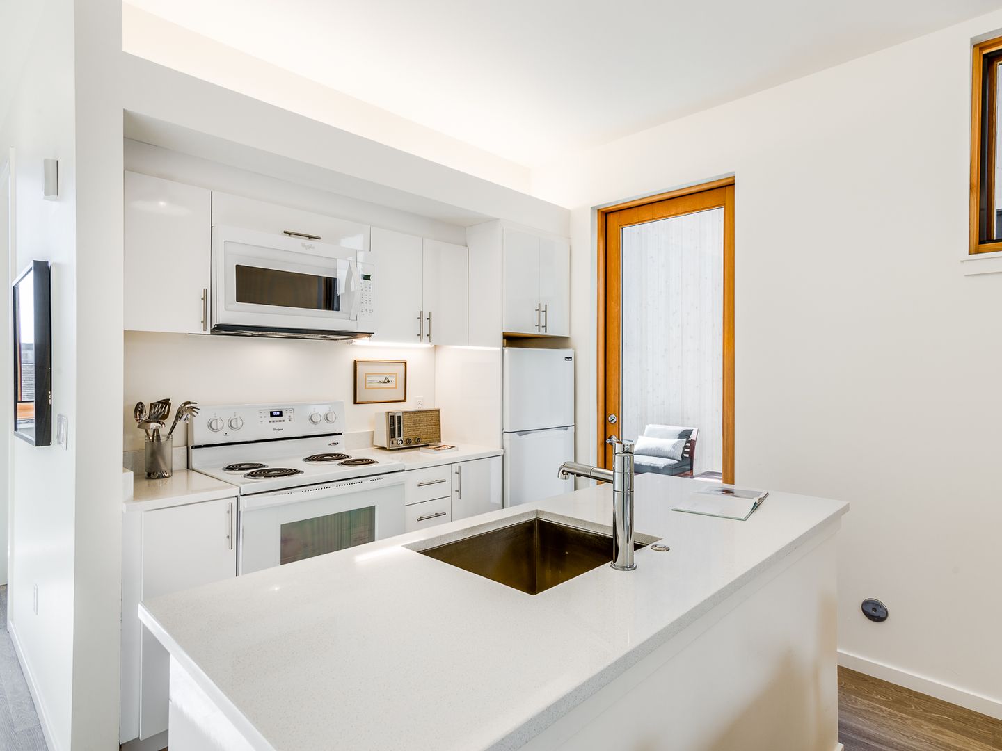 In unit washer/dryer and fully equipped kitchen with island!